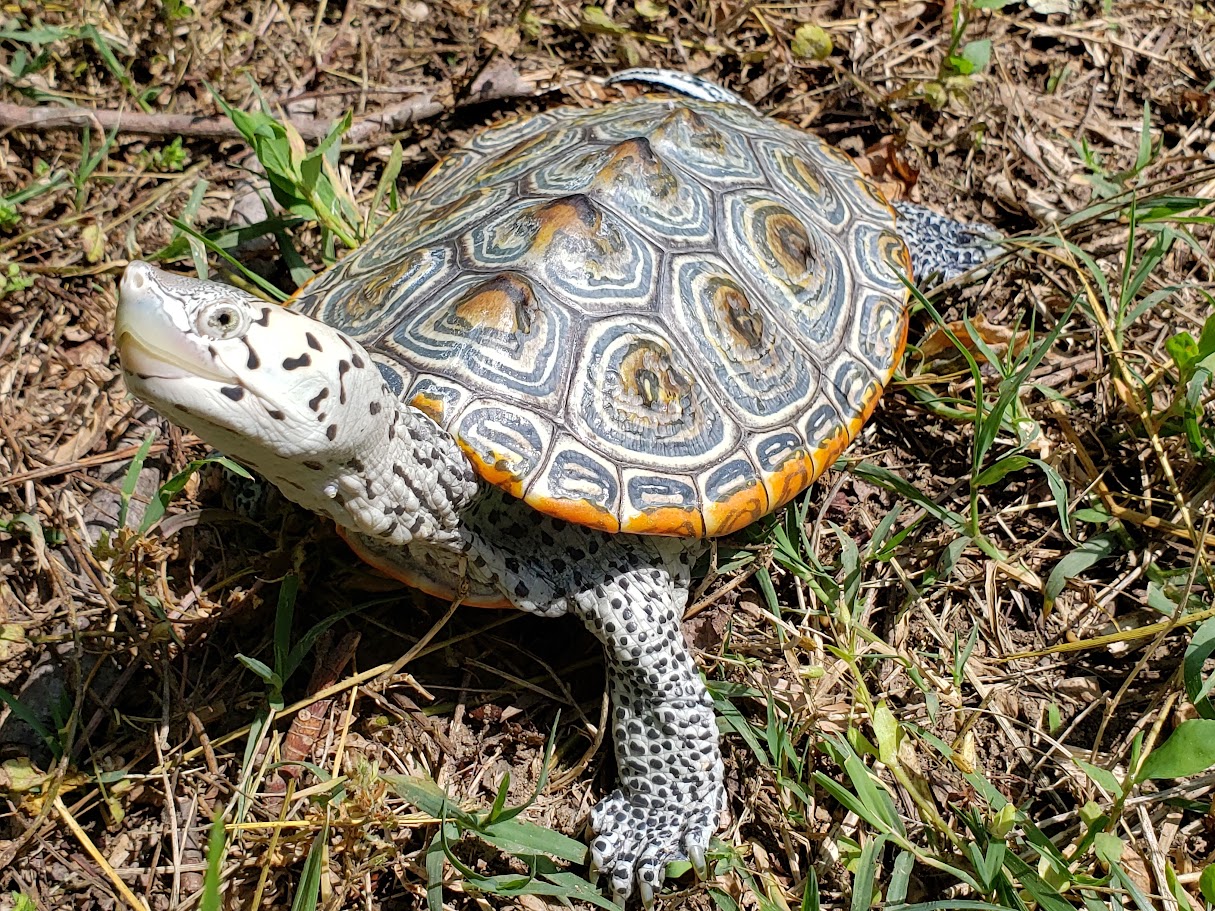 20230511_145027- Dash Published June 3, 2025 at 1215 × 911 in 20230511_145027- Dash Dash, SERC’s Ambassador Terrapin, goes for a walk in the sunshine. Photo credit: Karen McDonald